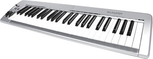 A MIDI control surface like the Behringer BCF2000 is perfect for operating the virtual gear in software programs like Cubase, Cakewalk, and many others. It features motorized faders, 8 endless knobs, an LED indicator, and more. MIDI controllers come in different forms including drum pads, control surfaces (for controlling a software mixer, for example), wind controllers, and combination controllers with keys, knobs, and sliders. The first question to ask yourself when considering a MIDI controller is "What will I be controlling?" The answer to this question will largely dictate the kind of controller you need, and what sort of features and controls it will offer. For example, if you plan on doing mostly synth work (with a software synth like Reason, for example), you will want a keyboard-style controller with your preferred keybed action. From there, you can decide whether additional buttons, sliders, or trigger pads are necessary for your setup. With the power that software synths, sequencers, and recording programs off error these days, many players are opting for a robust computer setup with a comprehensive MIDI controller. Finding the right keyboard is easy at Musician's Friend. We have a huge selection from the top manufacturers, and our Dual 45-Day Guarantees ensure your complete satisfaction and the lowest possible price. GlossaryThe following are some common terms you will encounter when shopping for your next keyboard. Use this glossary as a reference while you browse Musician's Friend's huge selection of synths, workstations, MIDI controllers, portables, arrangers, and digital pianos. A/D and D/A conversion » The process of converting an analog signal to a digital one (A/D) or a digital signal to an analog one (D/A). Aftertouch » A control produced by pushing a key past the point where the note sounds. Arpeggiator » A keyboard function that generates an arpeggio when a single note is played. Assignable » The ability to have a keyboard control affect specified parameters selected by the user. Auto-accompaniment » A keyboard feature that plays backing performances, often made up of a number of instruments. Bit depth » The number of bits captured in one sample, or slice, of an audio signal as it is converted from analog to digital by an A/D converter. Measured in bits and represented as 16-bit, 24-bit, 32-bit, 48-bit, etc. Higher bit depths usually produce higher quality sound. Compact Flash » A memory storage system developed by Scandisk that uses small cards to transfer data to and from compatible devices. Damper pedal » A pedal that, when pressed, maintains a note's sustain until released. DSL » Digital signal processing. The means by which most keyboards produce effects, equalization, filters, etc. that can be applied to an audio signal. Effects » Processes that modify a tone or tones, such as reverb, delay, vibrato, etc. Envelope » A device that changes a selected setting by a desired amount at certain intervals. Commonly used to alter basic waveform pitch settings. Filter » A device that alters a tone by removing specific frequencies. FireWire » A high-speed connection protocol developed by Apple that is similar to USB but much faster. Hammer action » A keybed that uses small hammers to trigger notes in an effort to re-create the feel of an acoustic piano. Keybed » The keys of a keyboard and their underlying mechanisms. Low-frequency oscillator (LFO) » An inaudible oscillator that alters basic settings of a waveform to create unique effects like vibrato or tremolo. Layer » A keyboard function that lets you create a sound by layering several different tones. MIDI » Acronym for Musical Instrument Digital Interface. A protocol that allows musical instruments and digital devices to communicate. GM is short for General MIDI, a music industry standard since 1991 that ensures consistent performance on all GM-compatible instruments and standardized sounds and locations. GM2 is an extension of GM that requires 32-voice polyphony (instead of 24 for GM) and includes more programs. mLAN » A network protocol designed by Yamaha for transmitting digital audio and MIDI data among a number of devices using a FireWire cable. Modulation wheel (mod wheel) » A keyboard controller that can alter various elements of a tone. Multitimbrality » The ability of a keyboard to play different sounds at once, i.e. flute, drums, strings, piano, etc. Multitimbrality should not be confused with polyphony. Oscillator » The sound-producing device in an analog synth. Pitch bend wheel » A keyboard controller that alters the pitch of the note being played up or down. Polyphony » The number of tones a keyboard can produce at once. Rhythms » Beats that are built into a keyboard in various musical styles. Sample rate » The number of times an audio signal is measured (sampled) per second as it is converted from analog to digital by an A/D converter. Measured in kHz and represented as 44.1kHz, 48kHz, 88kHz, 96kHz, etc. Sampler » A device that records digital audio and allows it to be altered and played back in various ways. Sequencer » A hardware or software device that records MIDI performance data and plays it back in a user-programmed sequence. SmartMedia » A memory storage system developed by Toshiba that uses small cards to transfer data to and from compatible devices. Similar to Compact Flash, but SmartMedia cards are smaller. Sostenuto pedal » A keyboard pedal that mimics the pedal of the same name found on grand pianos. It sustains only the notes that are being held down when the pedal is pressed. Split » A keyboard function that allows the user to divide the keybed into different sections and assign various tones to each one. Style » A musical passage, complete with many instruments, built into a keyboard. Tones (waveforms) » The sounds that a synthesizer or other keyboard produces. Waveforms have different shapes that give them unique tonal properties. The most common shapes a